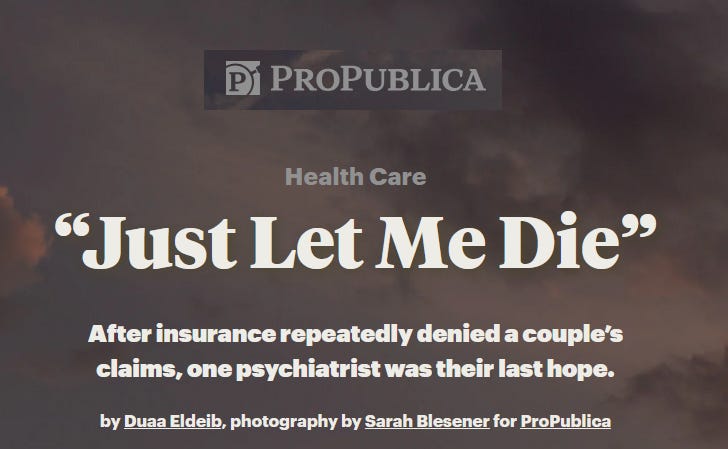 I appreciate much of ProPublica’s investigative work, but not so much their ongoing series on health insurers denying people’s mental health claims. This latest story, and an earlier one that exposed some of the on-call psychiatrists who help insurers deny people’s mental health claims in court, are indeed heart-wrenching—it’s sad to see people in serious distress not able to access whatever kind of assistance they find helpful. However, after many months of stories on this general problem, not once has ProPublica explored the core, driving issue: Why is it so easy for health insurers to use expert witnesses to successfully undermine mental disorder diagnostic and treatment claims?