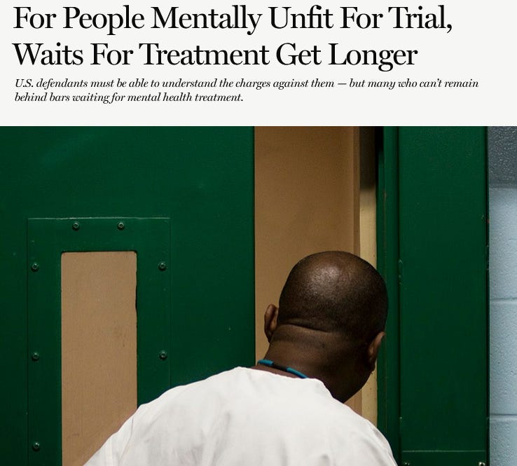 The Marshall Project has a similar problem, albeit with a different issue. They specialize in nonprofit journalism about the criminal justice system, and recently put out a new report on the long backlogs of people around the country getting caught for months or years in prison-limbo, never getting their day in court, after they’ve been declared mentally “incompetent to stand trial.”